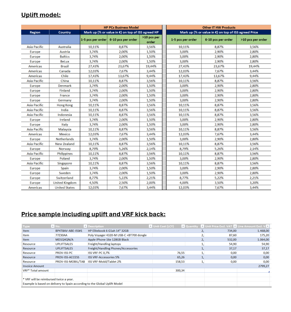 Click here to see the Global uplift/freight model and an order example including uplift and VRF .